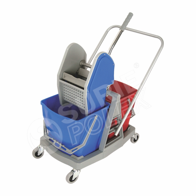 Double Bucket System Down Press Wringer with Steel Handle 4 Wheels in Base No Mixing of Clean and Dirty Water Strong Construction Intelligent Design Color Coded Buckets, Capacity 50L Easy to Move