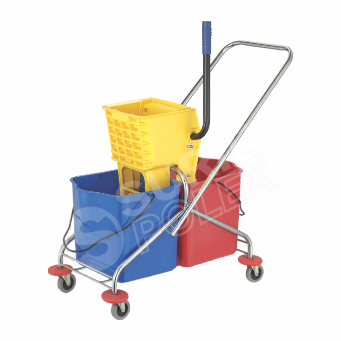 Double Bucket System Side Press Wringer Steel Handle 4 Wheels in Base No Mixing of Clean and Dirty Water Strong Construction Intelligent Design Color Coded Buckets, Capacity 50L Easy to Move