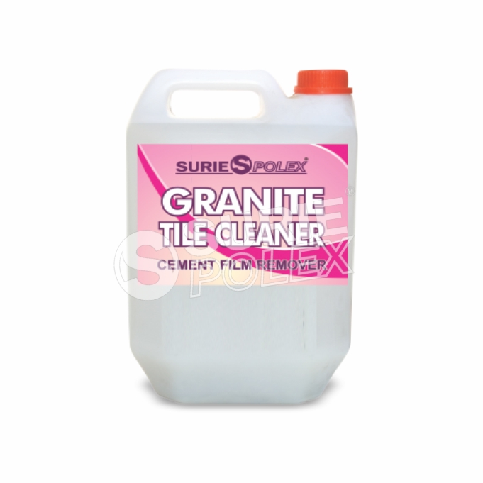Granite tile cleaner is a cement film remover used After installation of granite or tile on the floor. Granite Tile cleaner removes left over cement grout from the Floor. This cleaner retains gloss and shine of the Floor without harming the granite or tile.