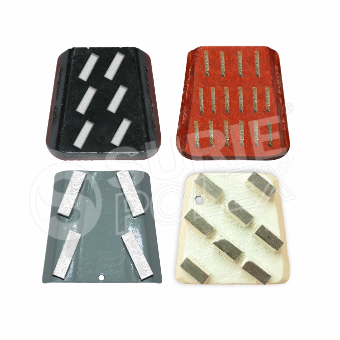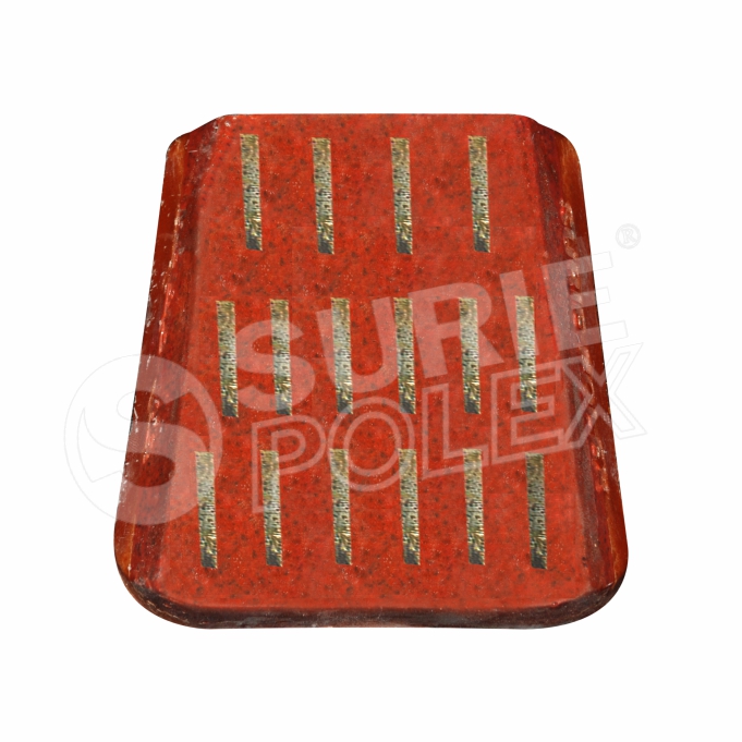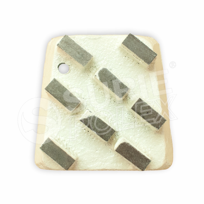 This is a Frankfurt shape Metal bond diamond abrasive. It offers much better gloss than conventional abrasives and gives higher productivity. 100 Grit is best for Fine Grinding of Marble & Granite. It is available in these grits: - 60, 100, 200, 300, 400, 500, 800, 1000, 1500, 2000, 3000, 5000, 8000 & 12000.This diamond abrasive contains 6, 12 or 16 metal bond segments and is used for lippage removal. coarse grinding, coating and adhesive removal. it has a fast material removal rate and the segments have very long life.